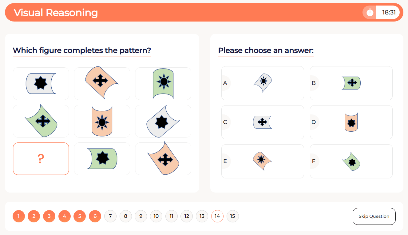 視覚的/空間的な課題には、パターンの識別、物体の回転イメージ、空間的な問題解決、複雑な構造の視覚化などが含まれます。