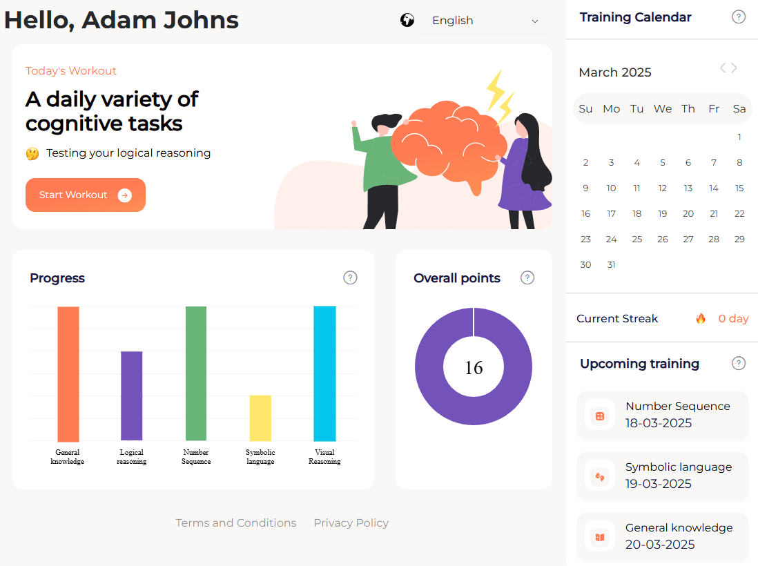 IQ Boosterでは、お客様の潜在能力を最大限に引き出すお手伝いをいたします。 脳も身体と同様に、鋭敏で機敏な状態を維持し、あらゆる挑戦に備えるためには、定期的なトレーニングが必要です。 当社のプラットフォームは、科学的根拠に基づく魅力的なエクササイズを通じて、重要な認知能力を向上させることを目的として設計されています。